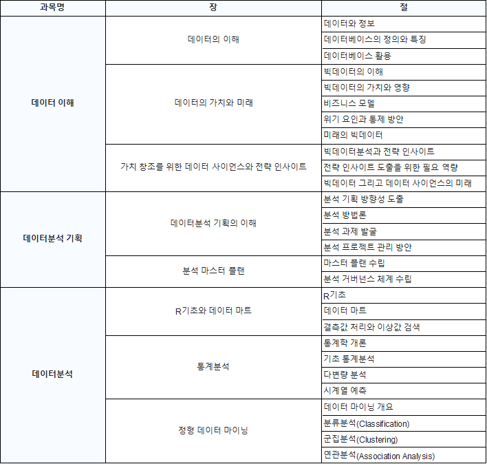 아무래도 가장 많은 30문항이 출제되는 데이터분석 과목을 집중적으로 공부해야할 것 같습니다.