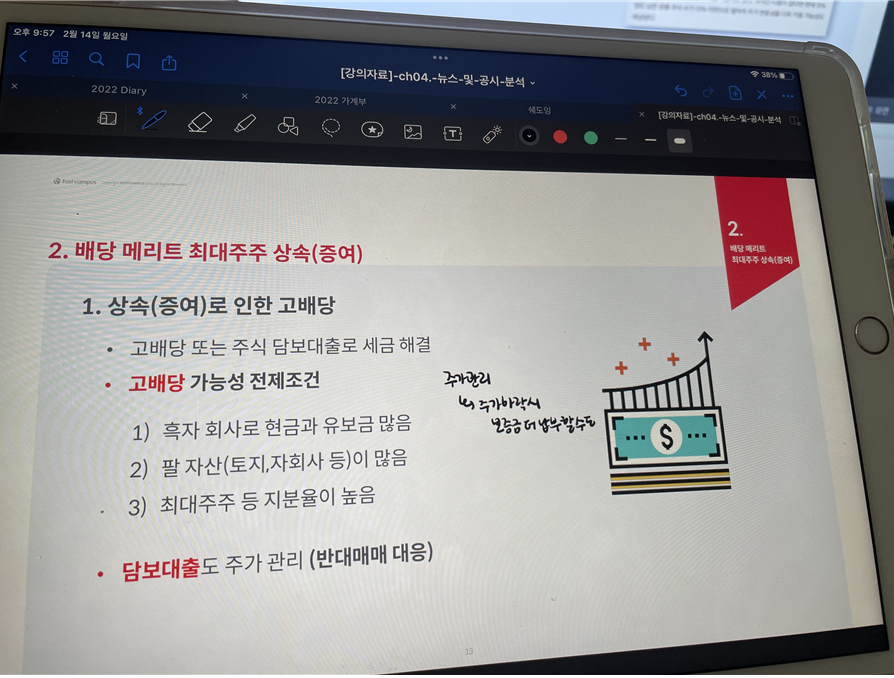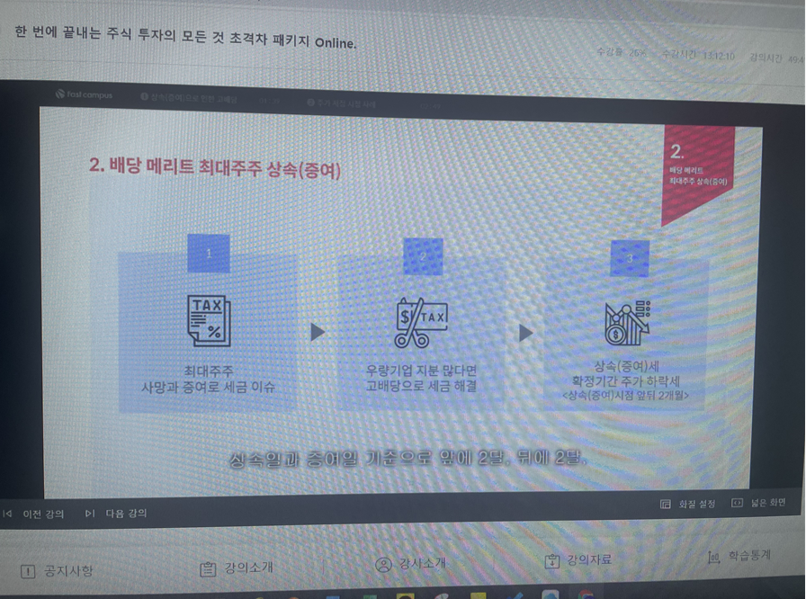 챌린지 22일 차에서는 호재뉴스 11가지 중 배당 메리트 최대주주 상속(증여)에 대해 학습하였다.