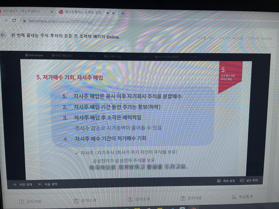 자사주 매입 이슈를 저가 매수 기회로 확인할 수 있음을 이해하였다